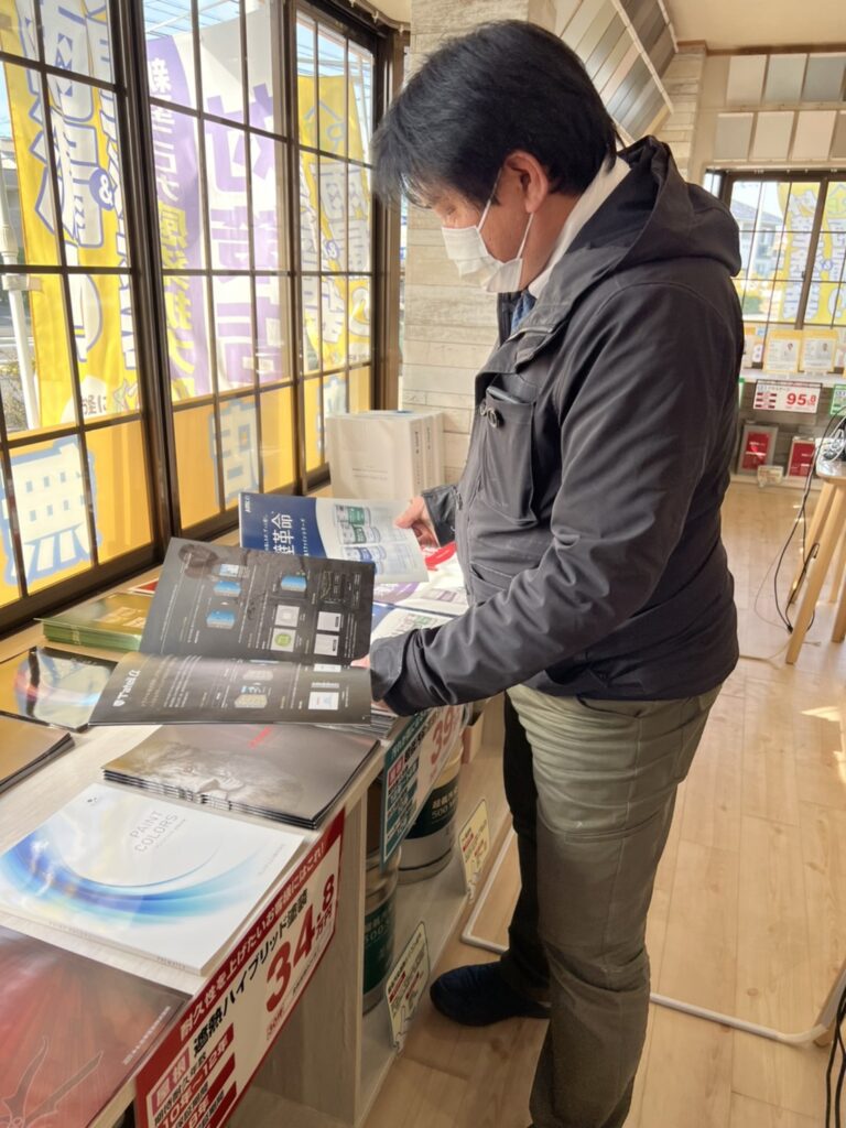 見ているのはプレマテックス様の『タテイルα』という塗料のパンフレットですね📖