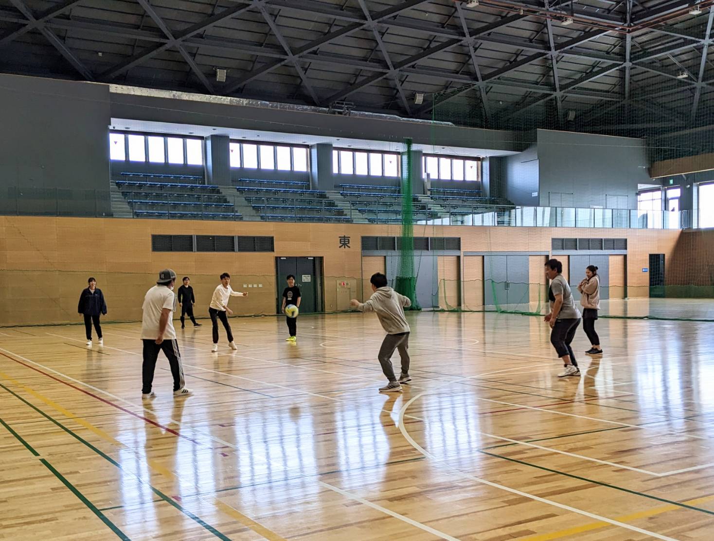 体育館到着後まずは準備運動がてら男性陣のわちゃわちゃタイム😗