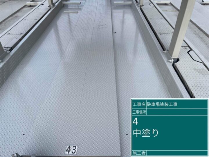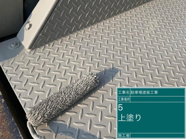 2度塗りすることで厚みを持たせ、塗装面を平らにするとともに、上塗り材を補強する役割があります٩( ''ω'' )و駐車場 上塗り