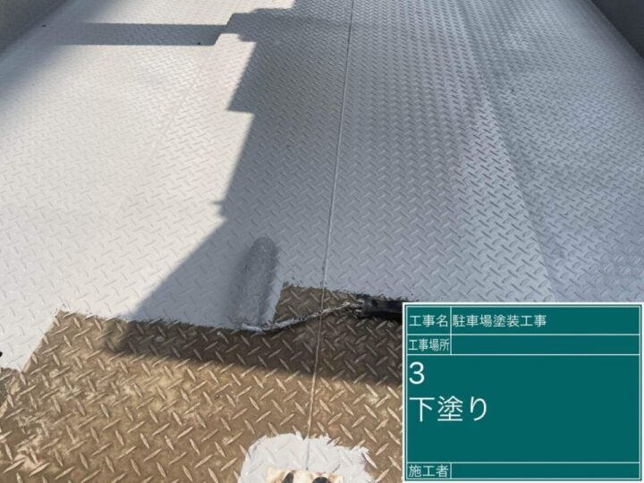 中塗り材と上塗り材の密着性を高める効果があります。駐車場 中塗り