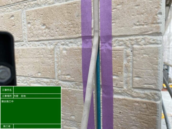目地内に間隙なく充填するためヘラで抑え込みます!!