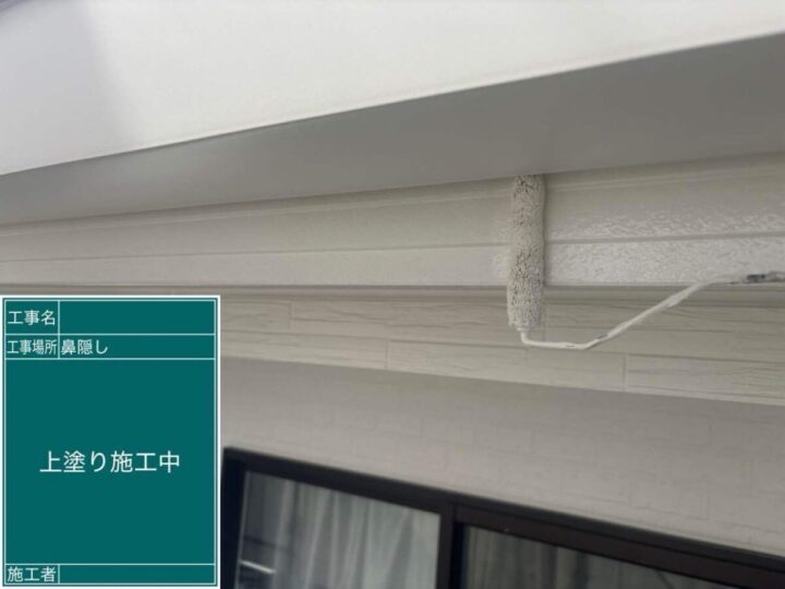 軒天部分には主に、防藻・防カビ・防水機能が備わった、通気性のある塗料を塗ります♪破風・鼻隠し