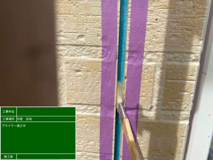 外壁同様、下塗りから塗っていきます。タスペーサー設置
