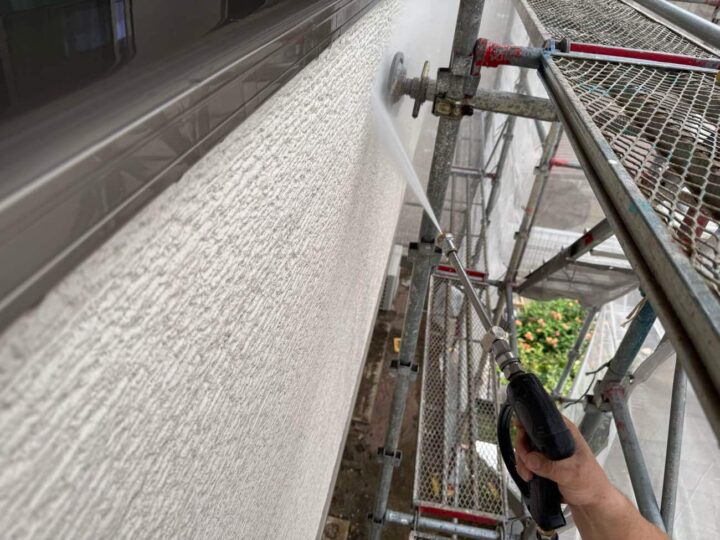 汚れが残っている状態の上に塗装を行ってもきちんと密着しないため、高圧洗浄で綺麗に洗い流しておく必要があります!!コーキング施工前