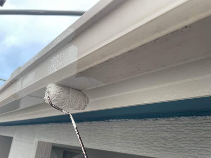 軒天部分には主に、防藻・防カビ・防水機能が備わった、通気性のある塗料を塗ります♪雨樋