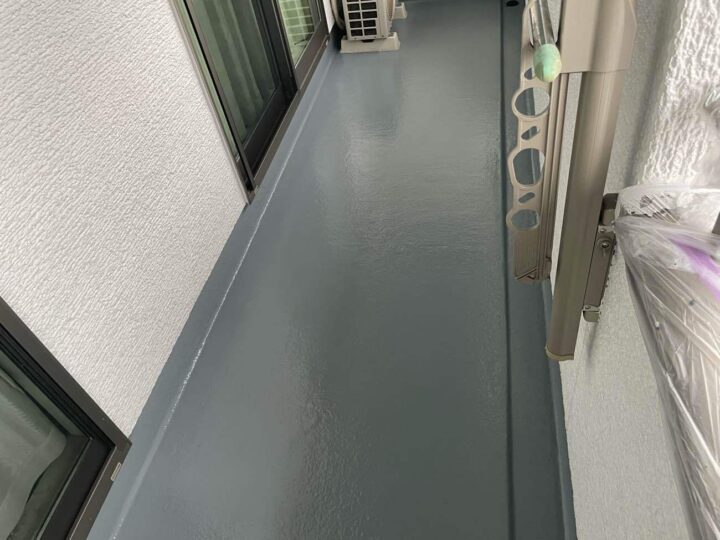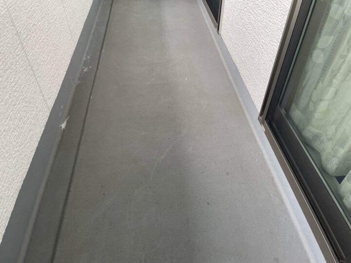 シャッターBOXはスチール (鉄)製 がほとんどのため、塗装しないまま放置していると、錆びが進行してしまって穴があいたり、美観を損ねる原因となるため塗装していきます!ベランダ 施工前