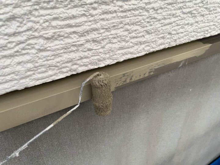 屋外に設置されている破風や鼻隠しも紫外線や雨風によるダメージで年月と共に劣化してしまうので、しっかりと塗っていきます(*'ω'*)水切り