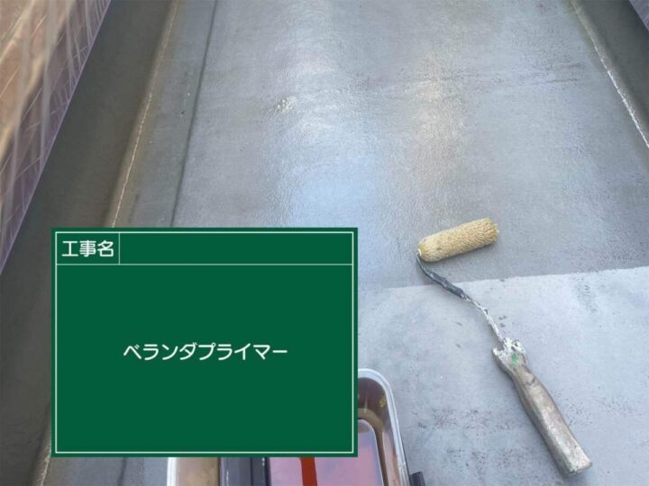 残ったウレタン層とプライマー層を除去し、コンクリートの健全層を露出することで新しい防水層施工が可能となります(。•ω- 。)プライマー塗布