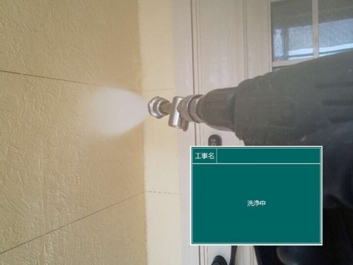汚れが残っている状態の上に塗装を行ってもきちんと密着しないため、高圧洗浄で綺麗に洗い流しておく必要があります!!