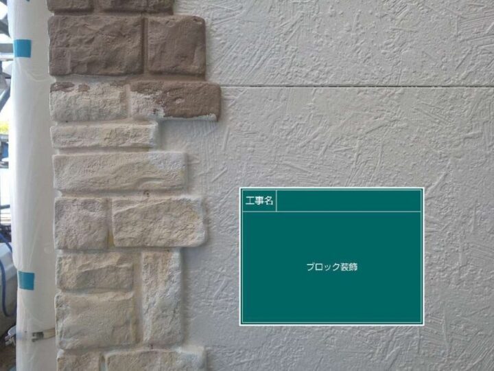 他の外壁とは材質が違う、ブロック部分もあわせて塗装していきます!ベランダ 施工前