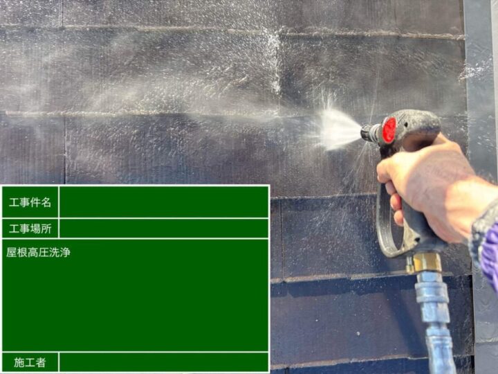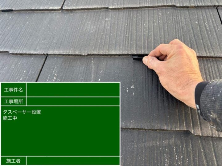 屋根のカビやコケなどの汚れを高圧洗浄機で取り除いてから塗装の工程に入ります(=゚ω゚)ノタスペーサー設置
