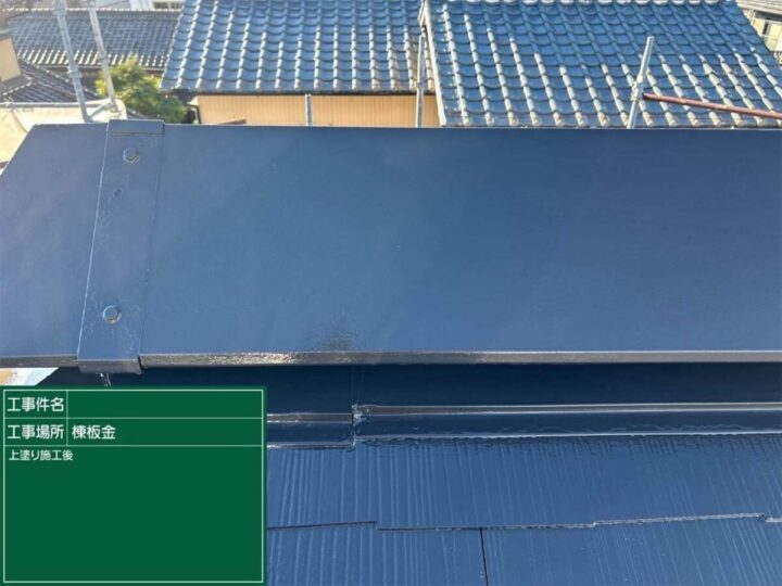 塗膜に十分な厚みを持たせ、強度を上げることができます٩( ''ω'' )و棟板金 塗装施工後
