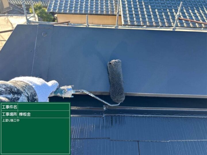 こちらも屋根と同様に塗っていきます。棟板金 下塗り