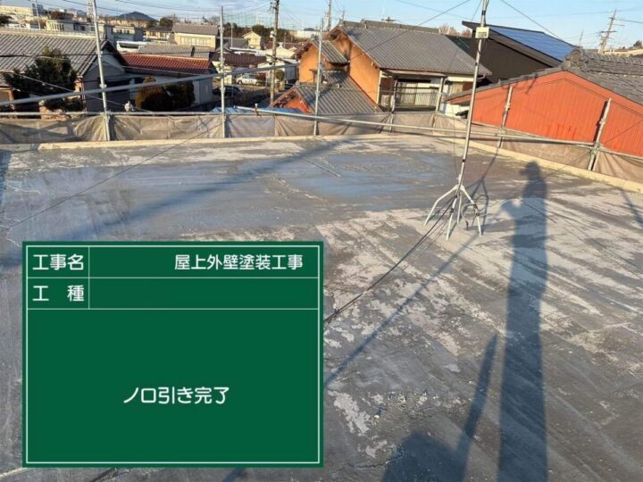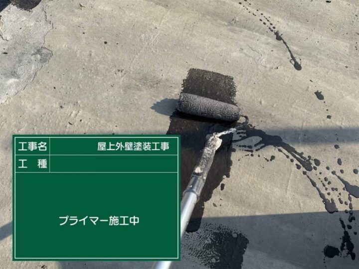 この作業により、凹凸のある下地を均一にして防水材が密着しやすい状態を作り出すのです!プライマー塗布