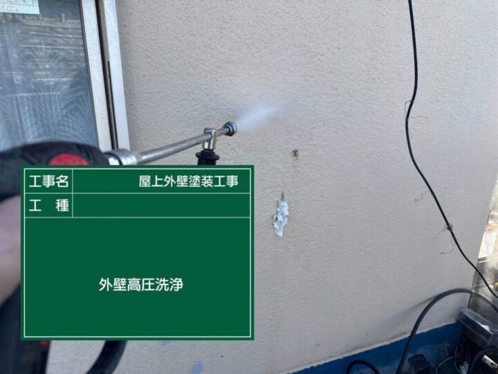 汚れが残っている状態の上に塗装を行ってもきちんと密着しないため、高圧洗浄で綺麗に洗い流しておく必要があります!!