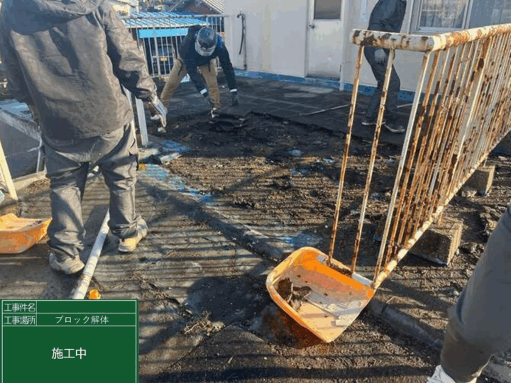 屋上に設置していたブロックを解体している様子です!