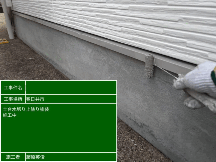 水切りは土台に水がはいるのを防ぐ重要な役割があり、劣化がお家の基礎を傷めてしまうことに直結しますので塗装でメンテナンスします(*゚▽゚*)