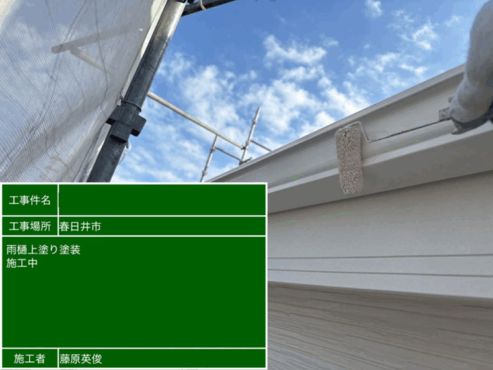 屋外に設置されている破風や鼻隠しも紫外線や雨風によるダメージで年月と共に劣化してしまうので、しっかりと塗っていきます(*'ω'*)雨樋