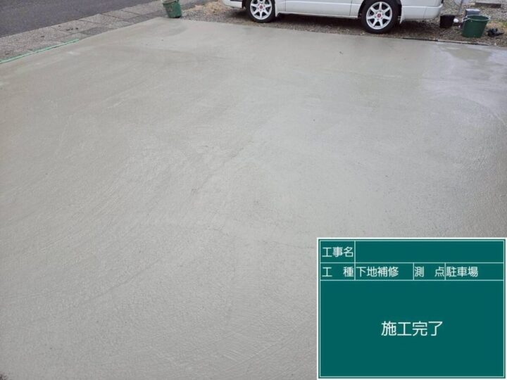 土間コンクリート全体を凹凸がないようにモルタルで仕上げていきます。土間 施工後