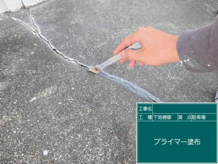 補修材がしっかりとくっつくように、接着剤の役割を持つプライマーを塗布します!土間 シーリング充填