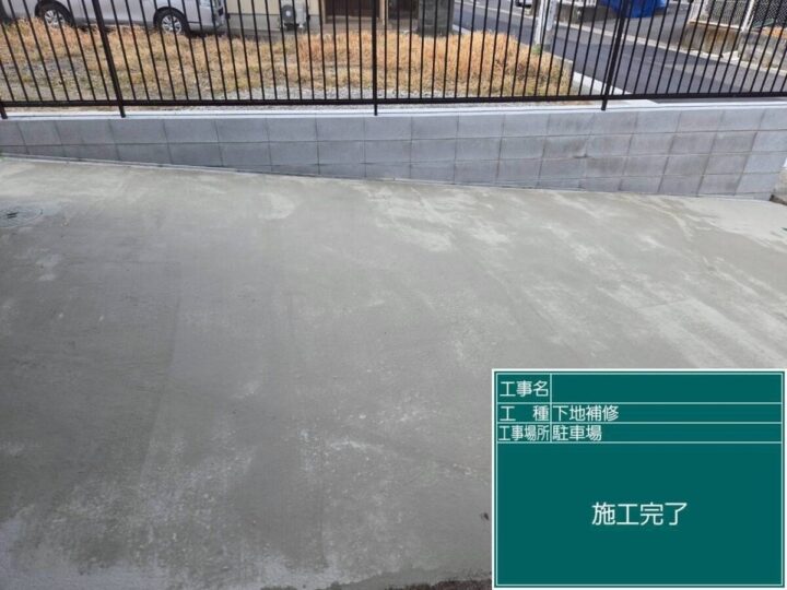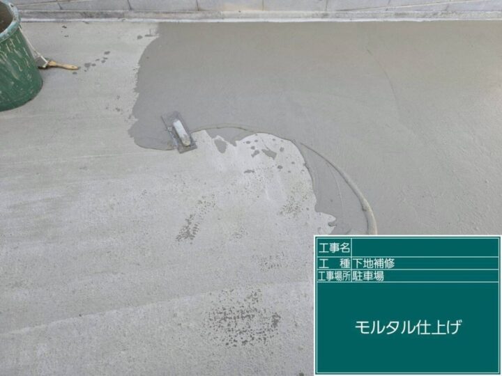 土間コンクリート全体を凹凸がないようにモルタルで仕上げていきます。土間 施工後
