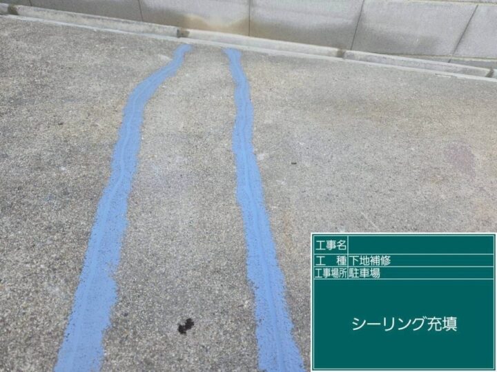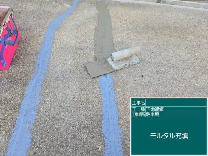 シーリング(補修材)を充填し、クラック部分を埋めました!土間 モルタル充填