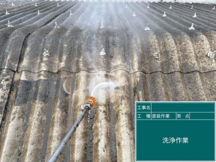 汚れが残っている状態の上に塗装を行ってもきちんと密着しないため、高圧洗浄で綺麗に洗い流しておく必要があります!!