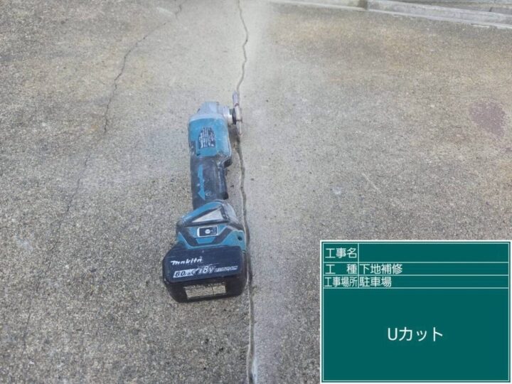 この切り込みを入れる事で、補修材がしっかりと入り込むようになります!土間 プライマー