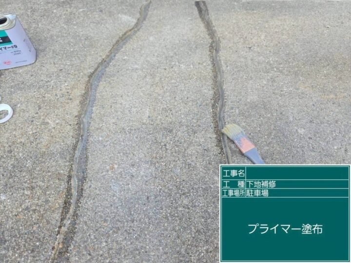 補修材がしっかりとくっつくように、接着剤の役割を持つプライマーを塗布します!土間 シーリング充填