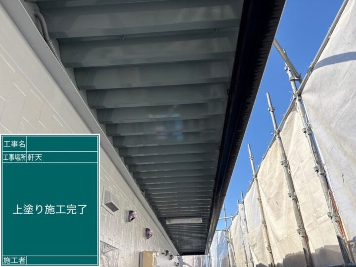 軒天部分には主に、防藻・防カビ・防水機能が備わった、通気性のある塗料を塗ります♪破風・鼻隠し