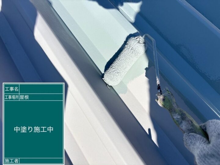外壁同様、下塗りから塗っていきます。中塗り